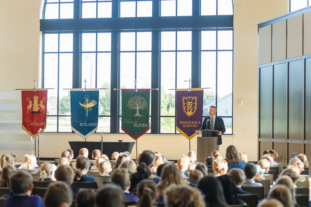 In the House System at Providence Academy’s Upper School, Master Teachers are responsible for teaching students academic subjects and leading their development as disciples in Christian faith. Four houses compete for weekly points and in special competitions throughout the year, with the cumulative winner earning the House Cup at the end of each academic year.